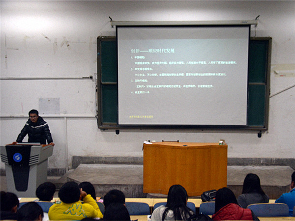 为了提高同学们的创新能力,培养同学们的创新精神,加强学风建设,12月10日,由文法系团总支主办,学生会学习部承办的科技创新交流会在1A107成功举办,邀请经管系、信息系、文法系的优秀科技创新代表进行创新经验交流。