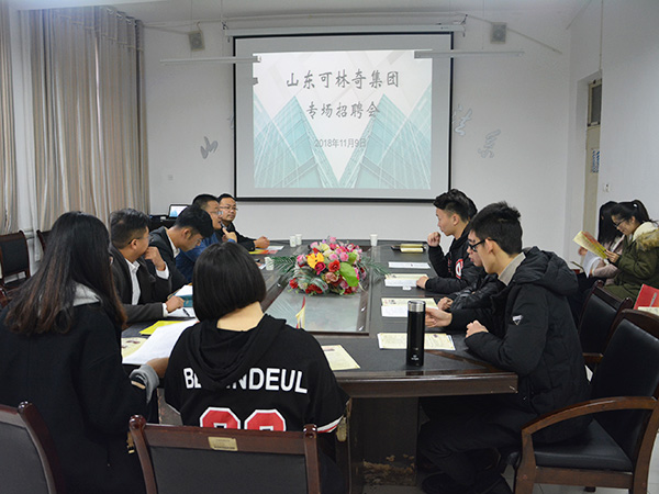 首先,马福泉对唐培贞一行人的到来表示热烈的欢迎。随后,唐培贞对山东可林奇集团进行简单的介绍,并强调就业单位选择的重要性。他还说明其公司“以人为重”的理念和完整独特的人才培养体系。随后,在交流环节中,同学们就未来就业、薪资、福利待遇等方面踊跃地提出问题,唐培贞耐心的一一解答。同时,他也对同学们将来的应聘工作和发展方向提出建议,他指出要着重培养兴趣,并以不同学习阶段的人看同一个杯子所想的深度不同为例子,说明大学是一个积累的过程,能使自己的综合能力和思维水平得到提高,同学们听后受益匪浅。最后,郭涛林对本次招聘会做出总结,建议同学们多方面发展自己,不断学习,为就业选择做准备。