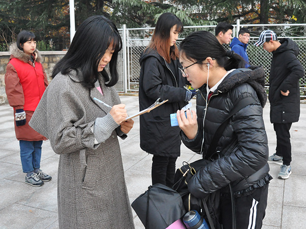 此次评比活动的具体流程为:早检人员提前到达早签地点,以签到速度为标准,记录、汇总一周各班签到情况,最后对各班签到成绩进行总排名。活动开始后,虽然天气寒冷,但同学们热情不减。他们认为,早检活动的举办,是让他们学会珍惜清晨时光,增强自我时间管理观念,而活动需要全班同学参与提高签到速度,这对班级凝聚力的增强也有所帮助。经过为期一周的评定,秘书学18-1班获得第一名,法学18-1班获得第二名,法学18-2班获得第三名。