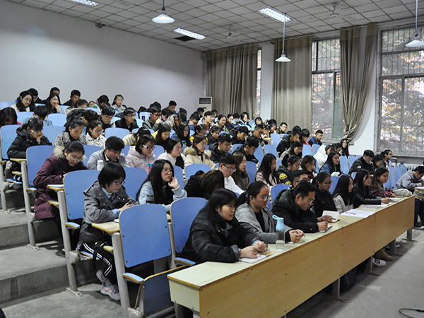 随后,刘相明就“三风”的概念释义、理论内涵、建设意义和构建措施等方面分别展开论述。关于校风,刘相明认为,是指一所学校全体师生员工在工作、学习、生活中精神风貌、道德情操、文化修养、人际关系、行为规范等方面的综合表现,是学校在办学过程中长期积淀而成的具有行为和道德意义的风气,是在校内乃至社会上具有极大影响并被普遍认可的思想和行为风尚。为加深同学们对校风的理解,他又举例科大和多所高校的校风,向同学们详细解释校风的形成过程与作用。在班风方面,刘相明指出,班风是一个班级特有的风貌,它可以引领班级未来发展方向,对于班级建设具有重要导向作用。有关学风建设,刘相明谈到学风的释义、形成以及学风的建设措施,并结合教育界对学风建设的一些观点,进一步强调了目前校区、学院乃至文法系在加强学风建设、构建和谐校园文化、提高办学水平和竞争实力等方面有着非同寻常的价值和意义。