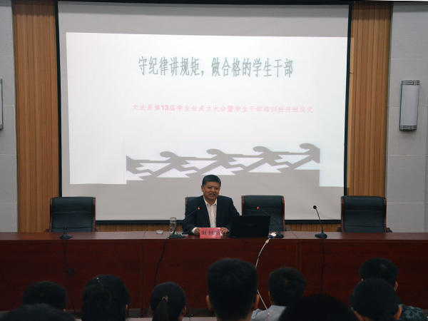 10月11日下午,文法系在八角楼举行新学期“益群”学生干部论坛开班仪式,系党总支副书记刘相明为师生做了题为《守纪律讲规矩,做合格的学生干部》的报告,系团总支老师、学生会全体成员、各班级和团支部干部、学生兼职辅导员和团总支委员等180余人参加。