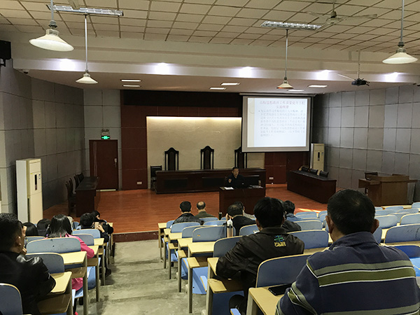 10月16日下午,在文法系模拟法庭,文法系组织全体教职工开展学习讨论《高校思想政治工作质量提升工程实施纲要》,文法系党总支书记马福泉主持学习活动并主讲。