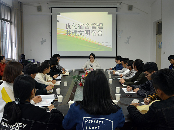 10月19日下午,由文法系团总支主办、系学生会承办的宿舍工作交流会在文法系会议室举行。文法系团总支老师刘俊艳、院自律会主任王立杰、信息系自律会主任芦亚男、文法系学生会主席焦珂、经管系学生会副主席郭颖超、信息系原纪检部部长葛娟娟、自律会宿检部及各系宿管部部长参加交流会。交流会由文法系学生会副主席林宵主持。