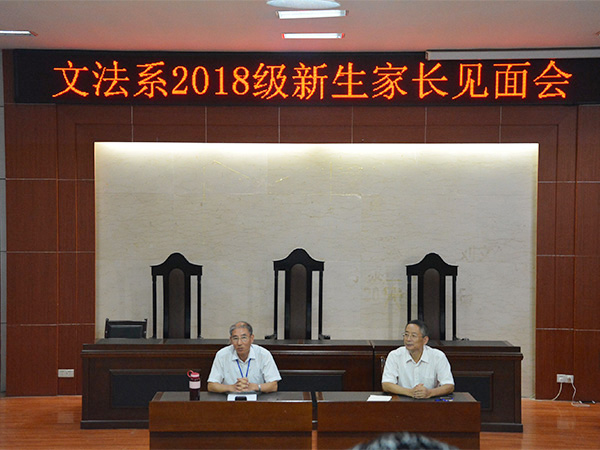 为加深新生家长对文法系的了解,9月8日上午,文法系在模拟法庭召开2018级新生家长见面会,系党总支书记马福泉、主任张学银出席见面会,100余名家长参加。