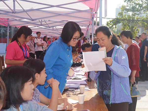 文法系党总支书记马福泉、系主任张学银与新生家长就文法系办学特色、学生学业规划等方面进行亲切交谈。