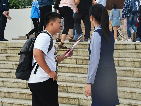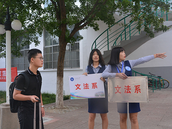 穿梭在校园里的文法系礼仪队为新生指路,他们是这个校园里一道靓丽的风景线。