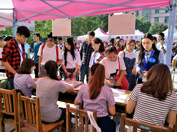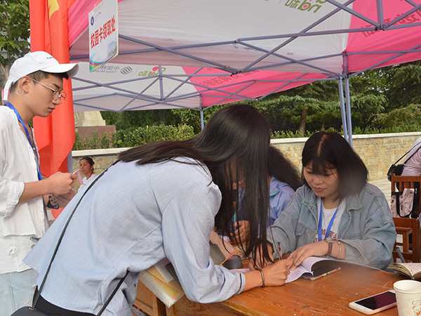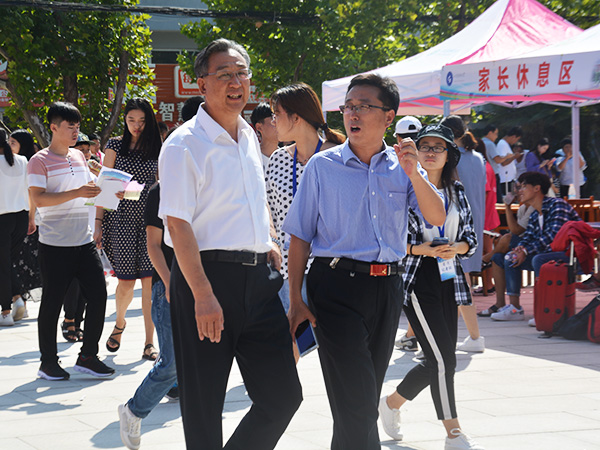 副校长兼泰安校区党委书记、管委会主任王少鹏来到文法系新生报到处视察新生报到情况