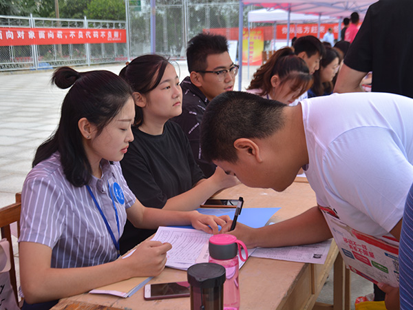 2018级学生兼职辅导员统一着装,正在为新生核对入学信息。