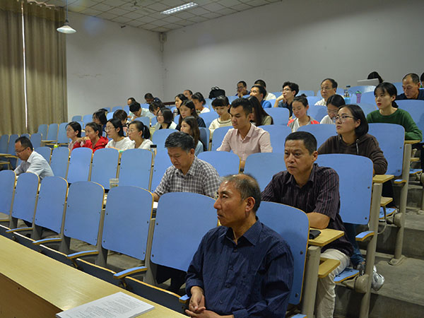9月18日下午,文法系全体教工和学生党员在模拟法庭开展党课学习活动,党课由系党总支书记马福泉主讲。