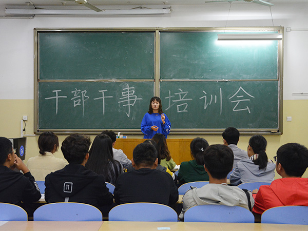 为提高学生干部综合素质和能力,尽快让新一届学生会熟悉工作流程,掌握科学的工作方法,近日,文法系分别在系会议室、2号教学楼、5号楼自习室召开新一届学生会干部培训会,系学生会主席团、部长团和各部门干事参加。