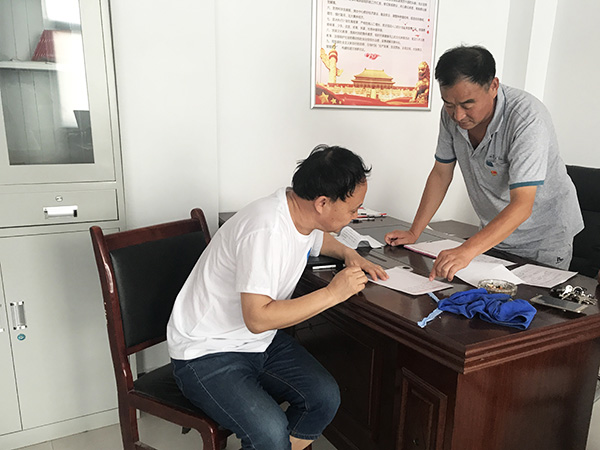 到达村委后,带队老师陈绘兵将“千村行动•志愿服务联系卡”交与后埠子村村主任赵发明。村主任赵发明与村内老教师何国立向成员们详细介绍村内留守儿童的情况。他们谈到,由于受到没有土地和搬迁后居住条件的影响,大多数年轻的村民选择外出打工谋生,考虑到升学问题,他们选择把孩子留在家里让老人帮忙照看,这导致后埠子村70%-80%的儿童全部是留守儿童。此外,在完成九年义务教育之后,许多孩子因为成绩和家庭经济问题放弃就读高中,选择外出打工,因此,后埠子村升学率也相对较低。