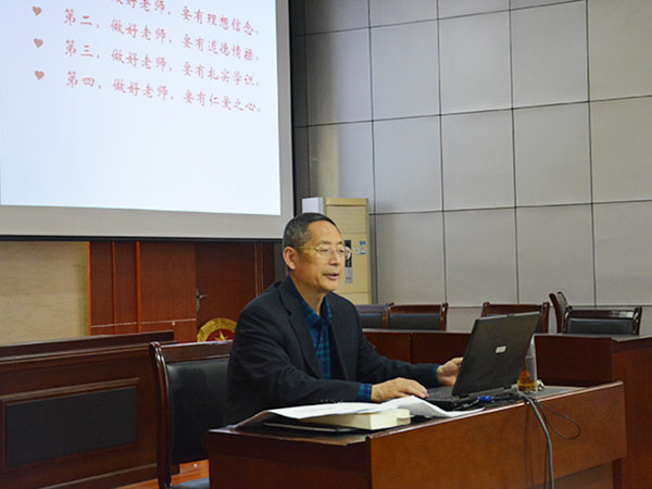 会议伊始,马福泉向大家传达《教育部关于印发严禁教师违规收受学生及家长 礼品礼金等行为的规定>的通知》和《建立健全高校师德建设长效机制的意见》等有关文件精神,明确指出广大教师要大力弘扬高尚师德师风,自觉抵制不良风气。随后,马福泉就习近平提出的做“理想信念、道德情操、扎实学识、仁爱之心”“四有”好老师进行详细解读。他提到,教师要注重中国特色社会主义理论体系的学习,以实际行动弘扬社会主义核心价值观,不断提高道德修养和人格品质,把正确的道德观传授给学生。高校教师不仅要有胜任教学的专业知识,还要有广博的通用知识和宽阔的胸怀视野,用信任树立学生的自尊,增强学生的信心。最后,马福泉带领大家学习《习近平谈治国理政》-《培育和弘扬社会主义核心价值观》一文,切实落实“把社会主义核心价值观贯穿于社会生活方方面面”这一要求。广大党员、干部必须带头学习和弘扬社会主义核心价值观,教师要利用各类文化形式和高质量、高水平的作品形象教导学生区分真善美和假恶丑。