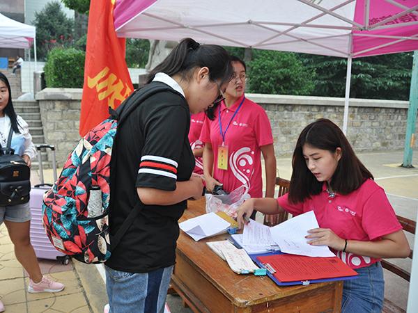 社会工作专业17级学生兼职辅导员杨光仔细将新生档案整理好,并告诉其接下来的入学流程。