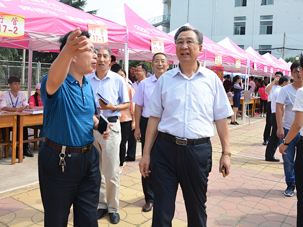 副校长兼泰安校区党委书记、管委会主任王少鹏来到文法系新生报道处视察新生报到情况