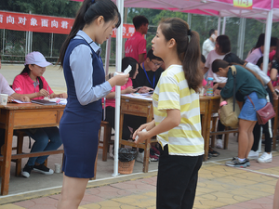 文法系礼仪队准备到位,在新生们的必经之路上做接引工作,举手投足间,尽展文法风采。