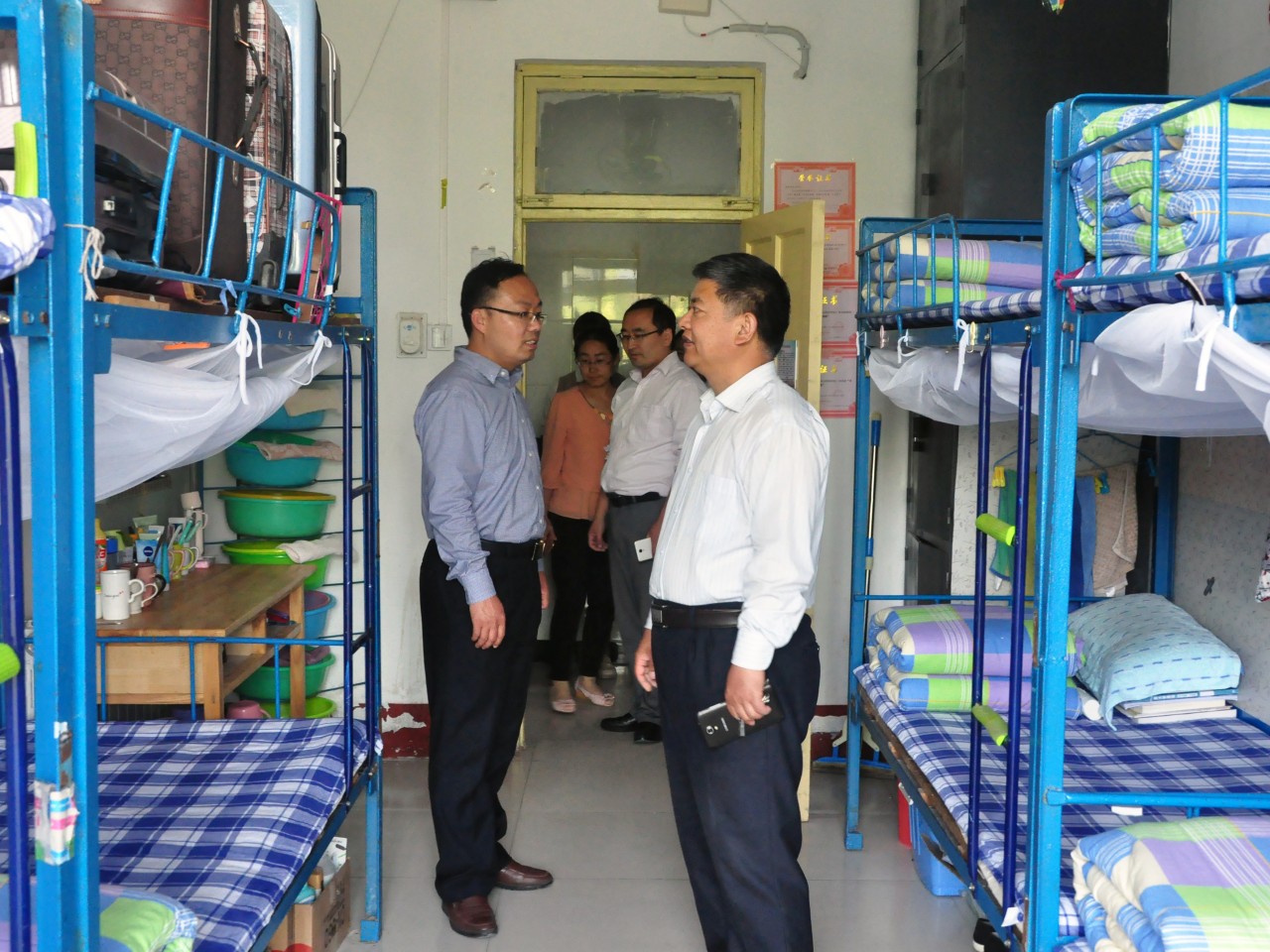 此次宿舍检查主要是进行宿舍安全隐患排查与内务检查。在检查过程中,重点检查违禁电器、烟头、酒瓶等,对宿舍内发现的安全隐患及时排查,不能立即解决上报学校有关部门解决。老师们对内务较好的宿舍进行表扬,并希望他们再接再厉,继续努力;针对个别毕业生宿舍中存在的地面较脏、出现违禁电器等现象进行教育,希望毕业生在即将离校的这段日子里能够做好安全防范工作,保证宿舍内务整洁。刘相明谈到:“这次排查的学生宿舍内务卫生状况普遍较好。之所以严抓内务,是希望学生们能够以宿舍为单位,形成良好舍风,通过舍风带动学风,督促同学们养成良好的卫生习惯和学习习惯,营造积极向上的学习氛围。”