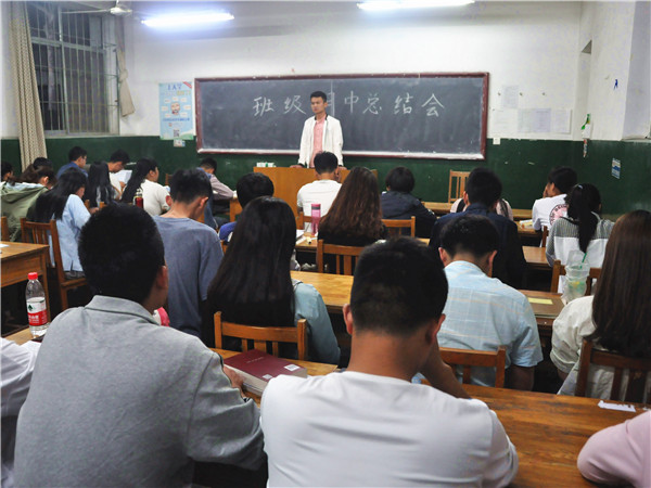 5月7日晚,文法系法学16-2班在自习室5102举行班级期中总结会,该班全体学生参加。