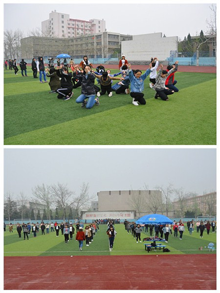 4月8日,天公不作美,同学们在雨中彩排,没有抱怨,没有不满,有的只是为系争光的坚定信念。