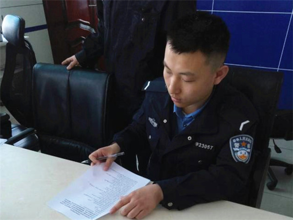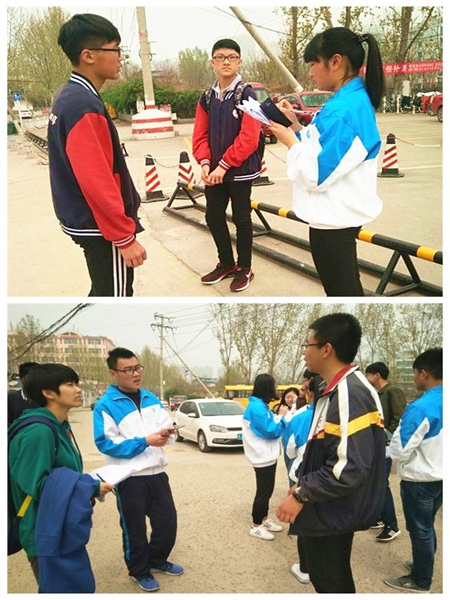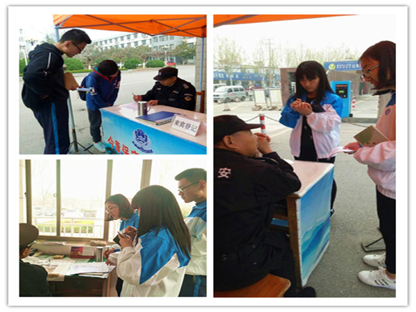 警务人员热心地帮助同学们做调查问卷。
