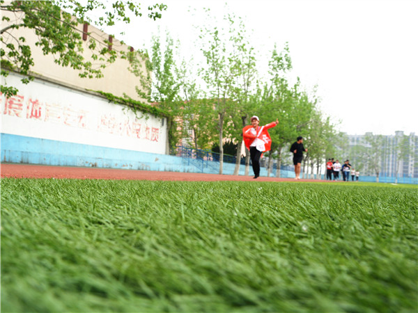 4月15日下午,文法系“乐跑”协会在操场举行以贴近自然、时刻奔跑为主题的赤足跑活动。