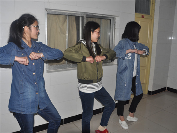 “一二三四,二二三四,换个姿势,再来一次” 晚上回到宿舍后,找地方再练习,相互纠正姿势力求更加完美