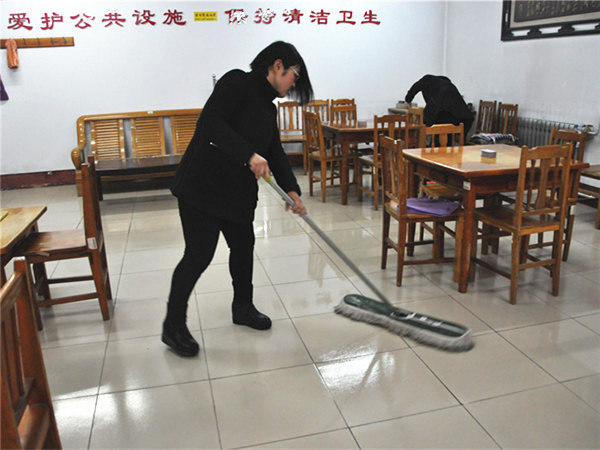 摆好桌椅,拖净地板,今天的任务完成了。