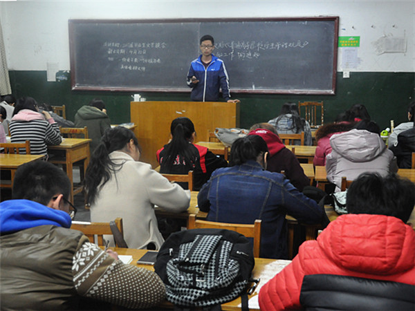 3月31日晚,文法系组织学生学习《普通高等学校学生管理规定》,学习活动在各自习室进行。