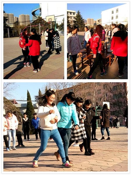 礼堂前更有跳绳、抢凳子、两人三足等比赛,参赛者只限女生呦!