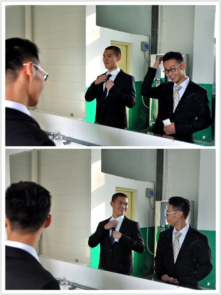 穿上帅气西装,等会儿赛场上你们一定不负众望。