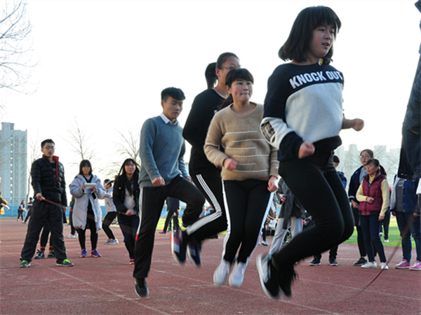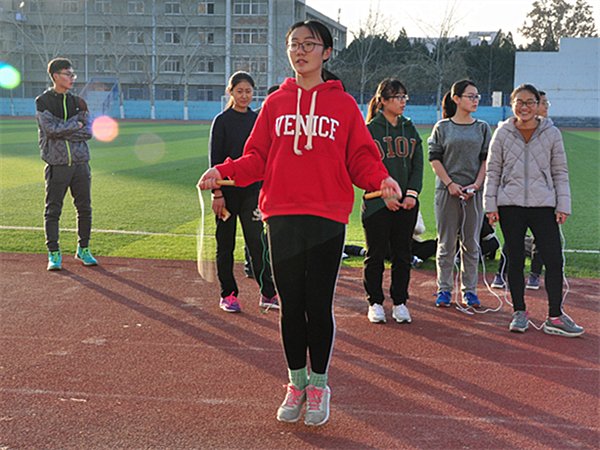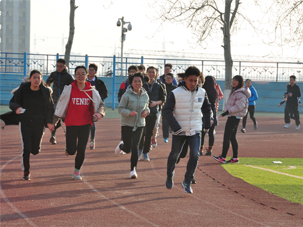 团总支老师郭艳培到场发表讲话,“希望大家走出宿舍,走下网络,走向操场。”
