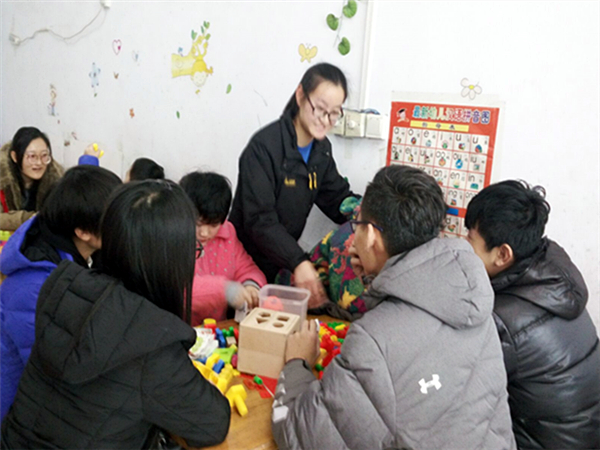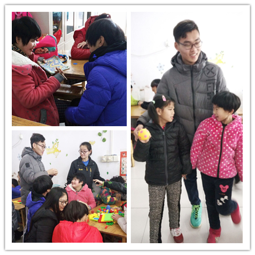 活动开始前,“微动力”的队员耐心听从指导老师的讲解,尽量了解到每一位智障儿童的身体状况,并就如何与孩子们进行交流展开讨论。这些孩子生来便伴有智力、心理、语音和行为能力等方面的障碍,为此,“微动力”成员采取了“一对一”或“多对一”的方法与孩子们进行交流。活动中,“微动力”成员认真投入,一丝不苟,全身心投入到与孩子们的交流中。