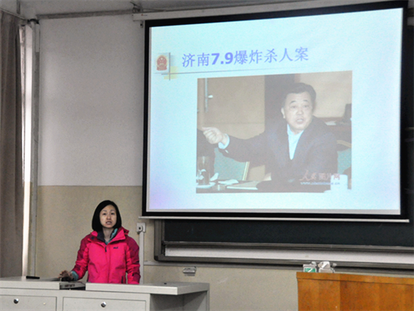 经过前期选拔,曹泽玲、江涛、宿秀平三位教师脱颖而出进入决赛。比赛过程中,三位老师思路清晰,层层推进,用丰富的案例,严谨的逻辑,在规定时间内具体地讲解所授科目,展示先进的教学理念、新颖的教学方法。曹泽玲结合学说和法条,具体讲解合同责任的构成要件、主观条件的适用、合同责任的抗辩事由;江涛以“济南7.9爆炸杀人案”为切入点,具体讲解刑事诉讼立案管辖问题;宿秀平结合当代大学生的日常,从公共秩序、道德规范、网络道德要求三方面讲解社会道德。赛后,王学宁对比赛作点评,并提出相应的改进意见。江涛老师将代表文法系参加学校的比赛。(文:张娜娜 图:张文杰)