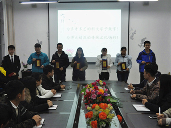 系学生会主席屈润松宣读表彰决定。优秀获奖代表王子旭发言,他说到“作为大学生,我们应该大力弘扬传统文化,感谢学校为我们提供了一个学习传统文化、展示自我的机会,自身能力得到很大锻炼”。 (文/图:范玉雯 宋艺)