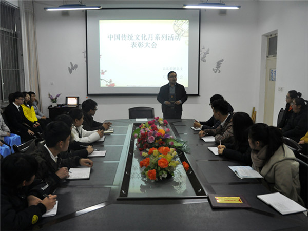 12月15日,由文法系团总支主办、学生会承办的中国传统文化艺术节表彰大会暨闭幕仪式在系会议室落下帷幕,会议由系团总支书记郭涛林主持,学生会干部、班级代表及获奖代表共30余人参加。