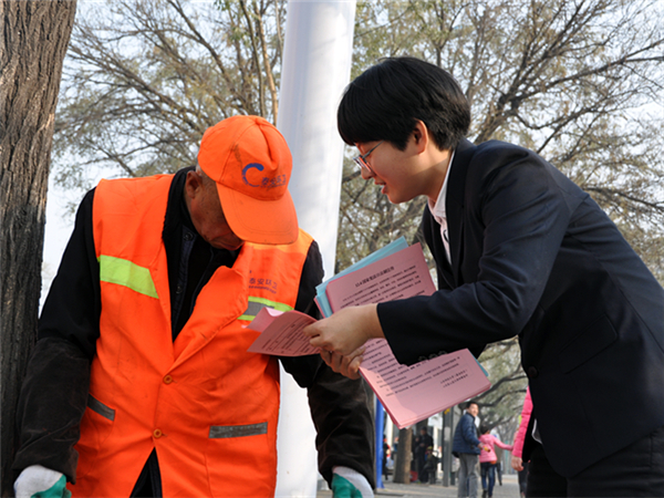 本次活动紧紧围绕“弘扬法治精神,树立法律权威”的活动主题,通过现场法律咨询、悬挂法制宣传条幅、分发宣传单等形式号召广大市民投入到知法、学法、守法、用法中来。活动持续了两个多小时,共发放宣传材料3000余份。 (文:朱晓彤 葛庆盼 图:张文杰)