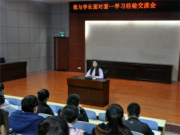 11月11日晚,由文法系团总支主办、学生会承办的学习经验交流会在模拟法庭举行,系14级、15级法学专业学生参加,担任团总支委员并获国家奖学金的推免生——庞家馨为主讲人。