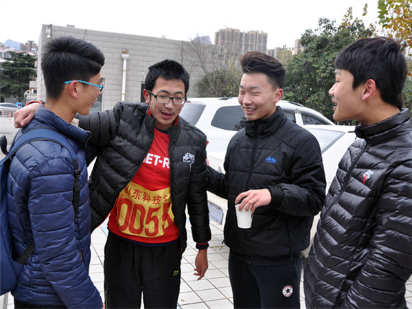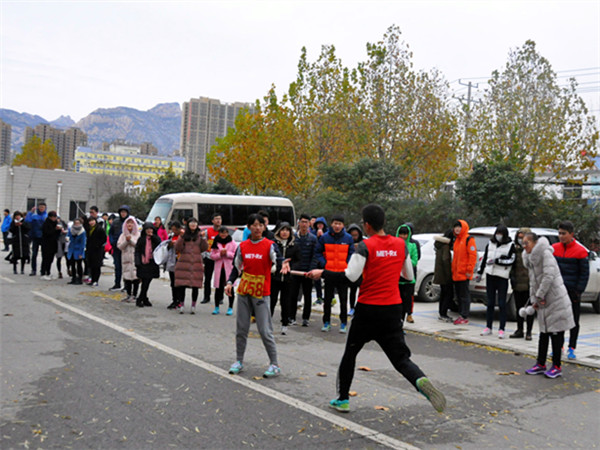 赛前,选手们蓄势待发,积极地做热身运动。下午2:30分,伴随着一声发令枪响,越野赛角逐就此拉开,虽然天气寒冷,但选手们仍奋勇拼搏,一路坚持。其中,行管16-2班的林霄全程始终保持在前两名,并以5分03秒的好成绩为文法系博得好彩,增强了文法系队员们的信心。接下来,其他选手也不甘示弱,斗志昂扬,步伐矫健,体现了文法学子不言放弃的精神,展现了文法学子良好的精神风貌。在最后一棒的接力中,同学们更是情绪高涨,呐喊声、加油声响彻校园。经过激烈角逐,文法系大一、大二代表队分别斩获比赛的亚军、季军,大三代表队获得第六名。(文:张娜娜 袁华蕊 图:宋艺 范玉雯)