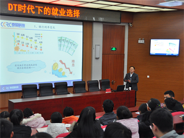 会谈结束后,王玉升应邀为同学们做了题为“DT时代下的就业选择”的报告,文法系“益群学生干部成长营”全体成员和西校园毕业生代表共150余人参加了报告会。报告会结束后,同学们纷纷递交个人简历,填写求职意向表,有10余名同学与用人单位达成初步意向。