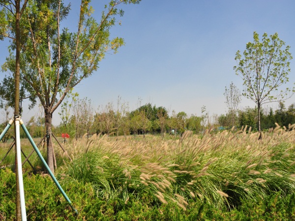 去年,这里还是一片盐碱地。现今所有的土、树、草、花都是从外地运来,可见当地政府对生态环境的重视