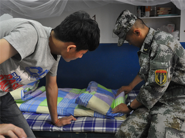 教官进入宿舍为同学们进行手把手教学。